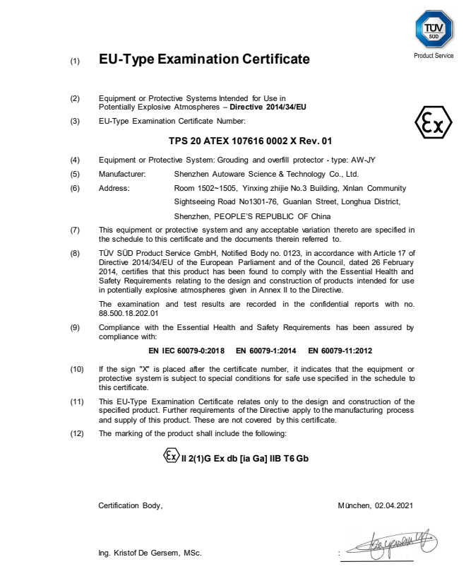 | 防爆證號(hào) | TPS 20 ATEX 107616 0002 X |