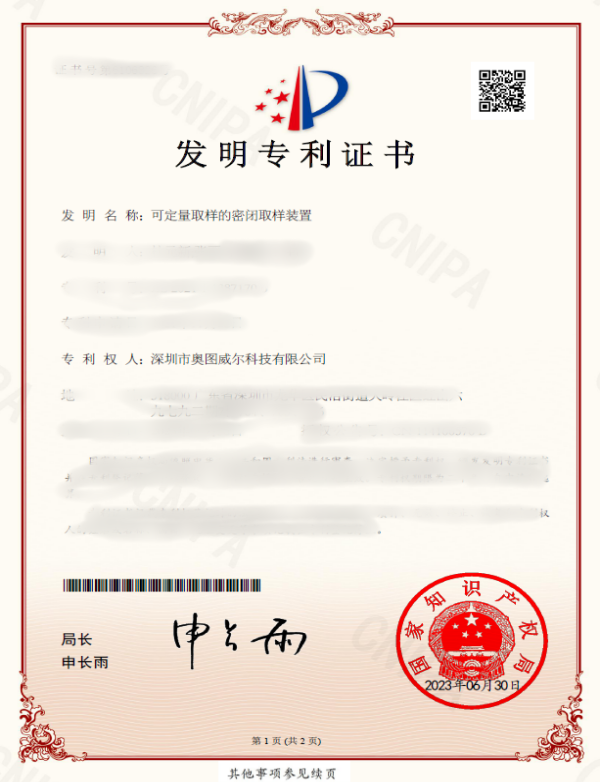 • 可定量取樣的密閉取樣裝置