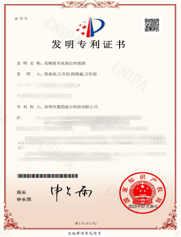 • 高精度光電液位傳感器
