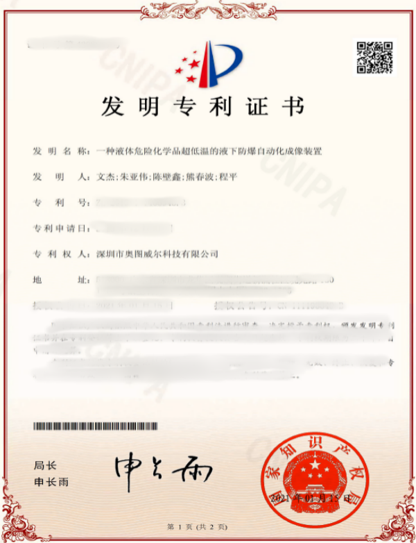 超低溫的液下防爆自動化成像裝置