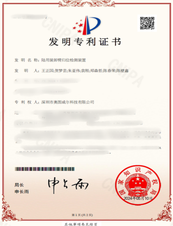 • 陸用裝卸臂歸位檢測裝置