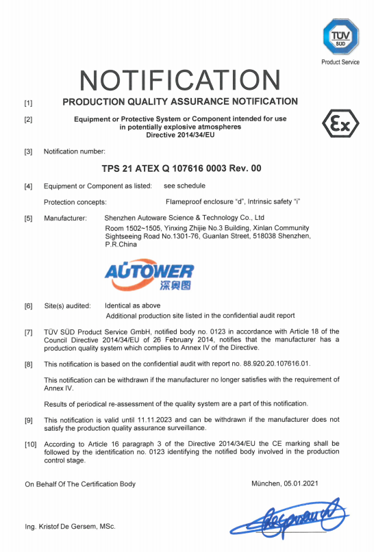 | 防爆證號 | TPS 20 ATEX 107616 0001 X |